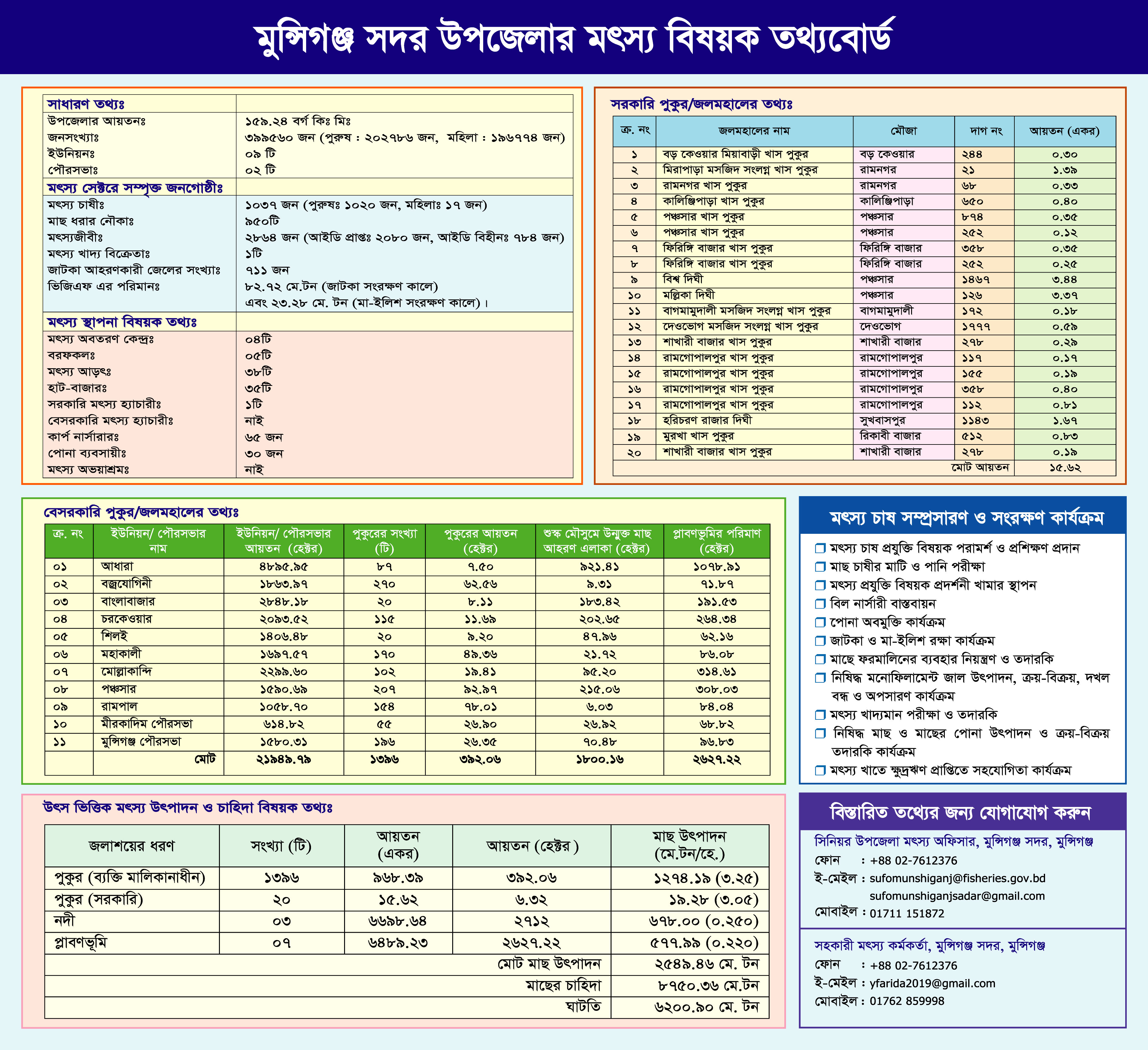 এক নজরে মুন্সিগঞ্জ সদর উপজেলার মৎস্য বিষয়ক তথ্যাদি পেতে নিচের ছবিটি ক্লিক করুন। ধন্যবাদ।